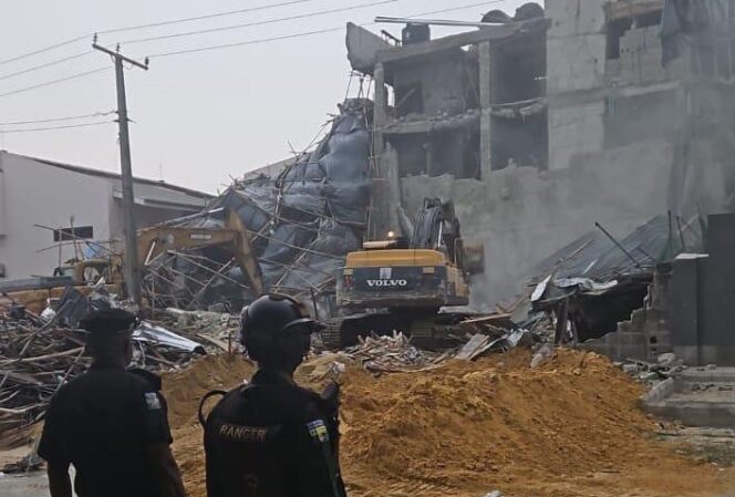 A building under construction on Oriwu Street in Lekki Phase 1, Lagos, has collapsed, trapping multiple people beneath the debris.