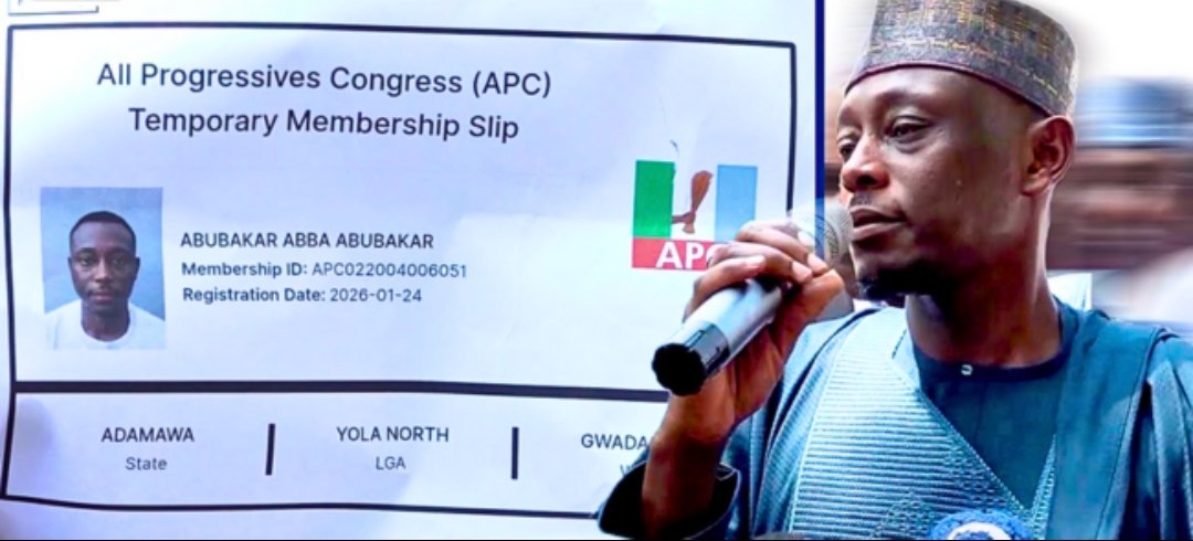 His temporary APC membership slip confirmed his registration details as Adamawa State, Yola North Local Government Area, and Gwadabawa Ward.
