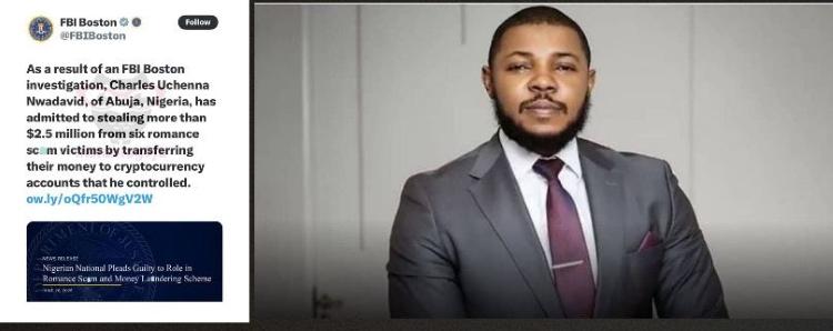 A federal jury in Boston had previously indicted Charles Uchenna Nwadavid, in January 2024 on charges of mail fraud and money laundering.