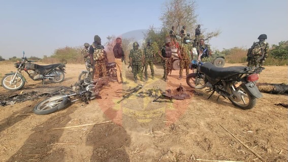 Following the clash, troops conducted a clearance operation in the surrounding area, recovering several weapons and items believed to belong to the fleeing insurgents. Items recovered include one OJC gun, one PKT gun, two AK-47 rifles, four AK-47 magazines, a bandolier of PKT ammunition, several rounds of 12.7mm ammunition, a camel bag containing N840,000, two mobile phones and five motorcycles.