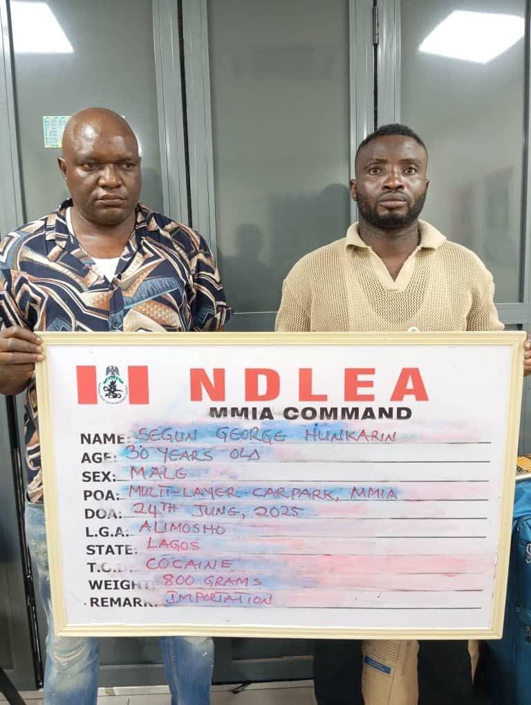 Arraigning the two defendants, the prosecutor, Barrister Adekunle Adebajo, told the court that they were arrested in June 24, 2025, at the Murtala Mohammed International Airport, Ikeja, Lagos.